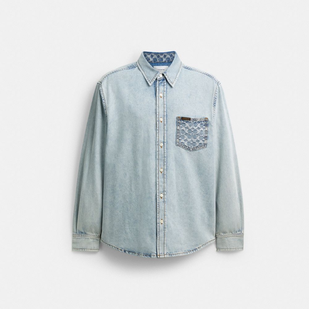 전통적인 작업복 스타일에서 영감을 받은 클래식핏 데님 셔츠. 유해한 화학 물질과 살충제를 사용하지 않은 유기농 면으로 제작됐습니다. 어디에나 잘 어울리는 이 스타일은 시그니처 가슴 포켓, 헤리티지 감성을 더해주는 코치 플래그 디테일로 마무리했습니다.